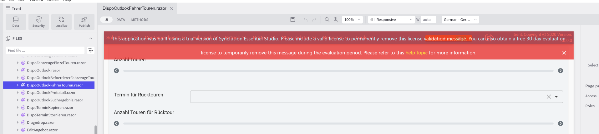 When i open a page with syncfusion components in RBS i see a license message from syncfusion.