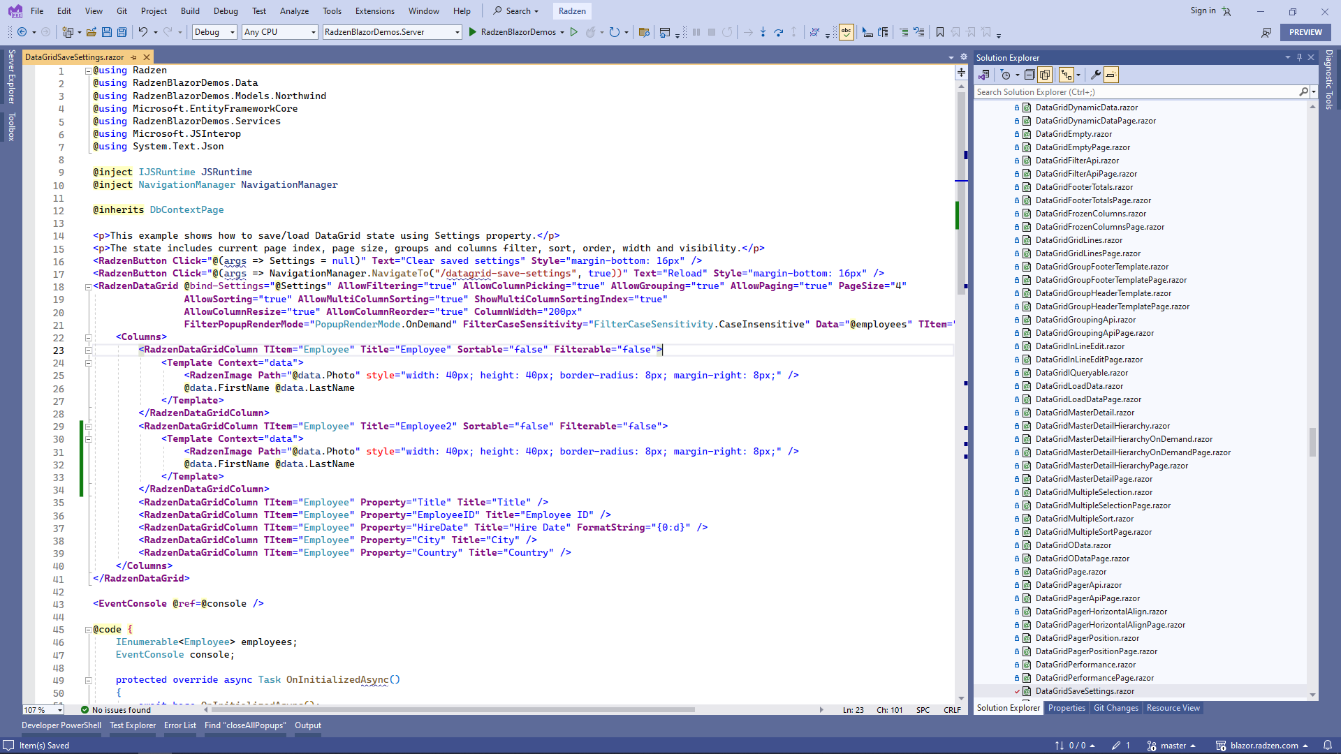 <RadzenDataGridColumn TItem="Employee" Property="EmployeeID" Title="Employee ID" />