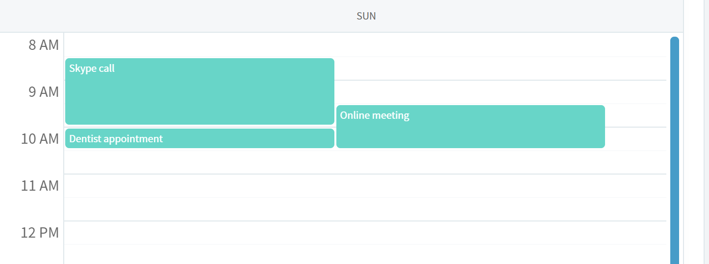 I notice that the second and third appointments have been overlapped. Their style has both left: 45%;. If changed the style of the 3rd to left: 0%; the result is the following: