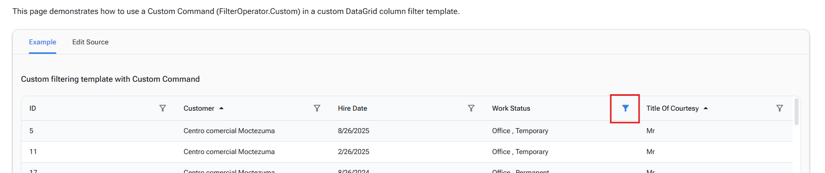 A recent change appears to have broken the Custom Filter indicator. Even though nothing is selected, the indicator is highlighted. See your own component documentation for an example: