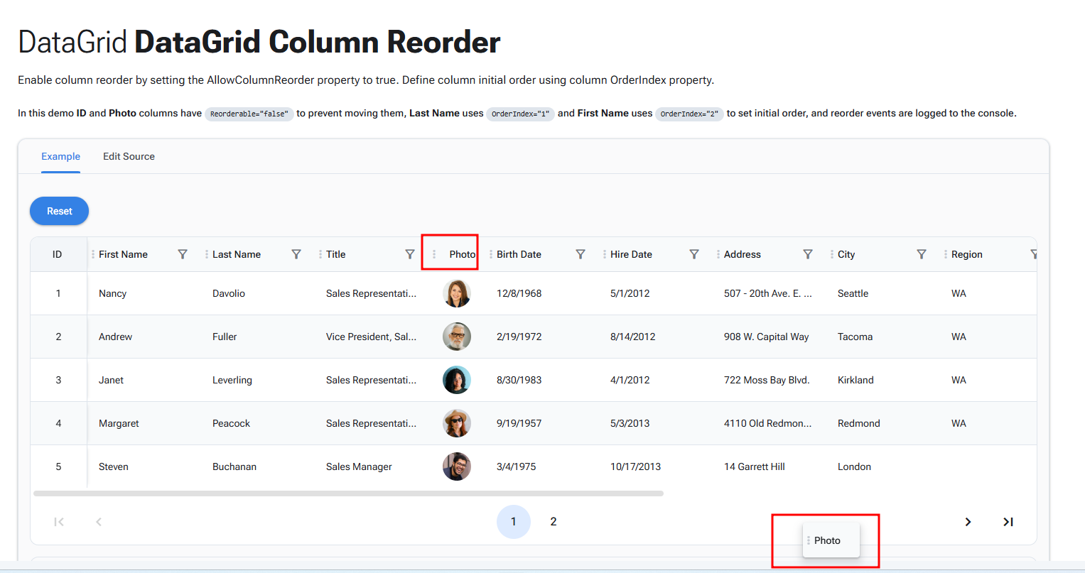 Dragged and placed to desired index, but column stick to mouse not remove after click.