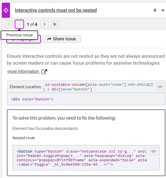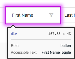Using Axe DevTools to check ADA compliance with a website, my coworker is getting “Element has focusable descendants” on the Filterable header: