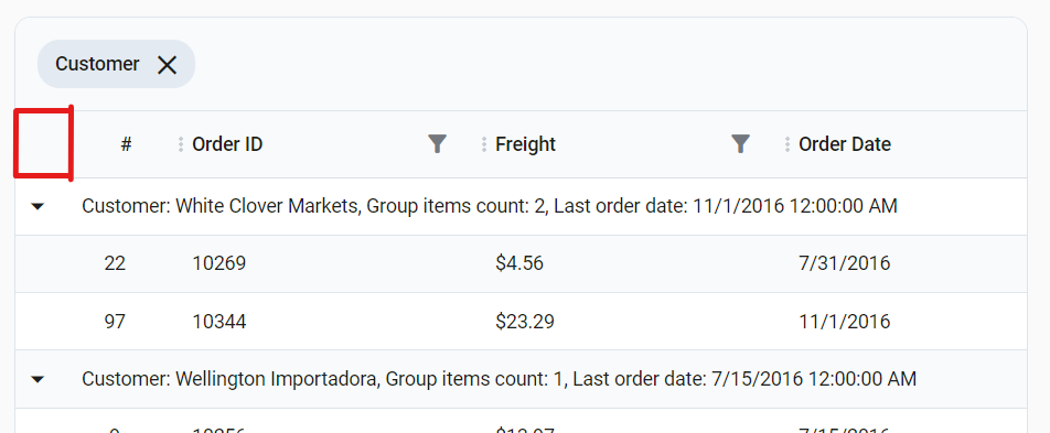 I need to place Expand all/ Collapse all button on the header template for arrow down/up column comes with grouping.