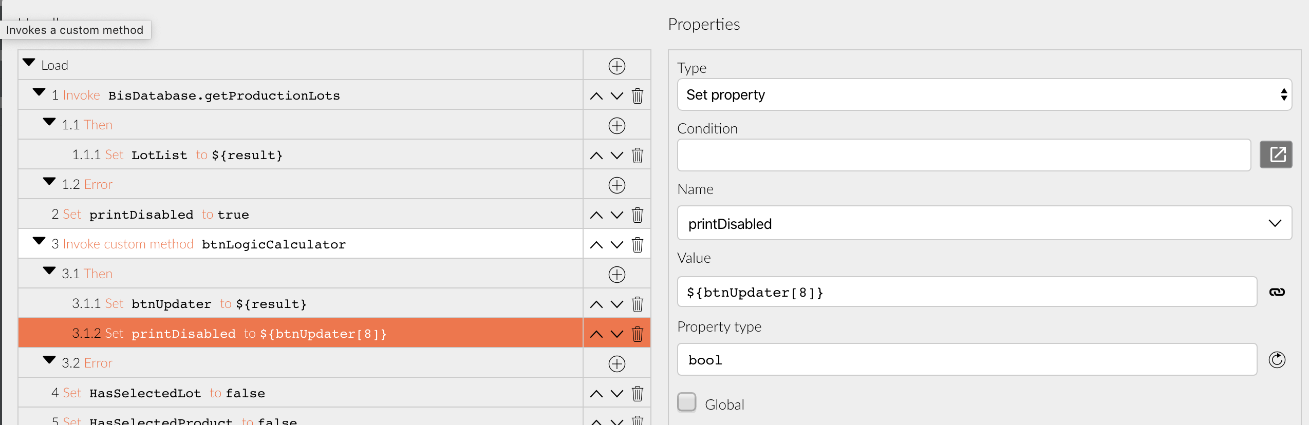 I am currently trying to use a custom method to do CRUD button logic (which buttons should be enabled/disabled) dynamically.