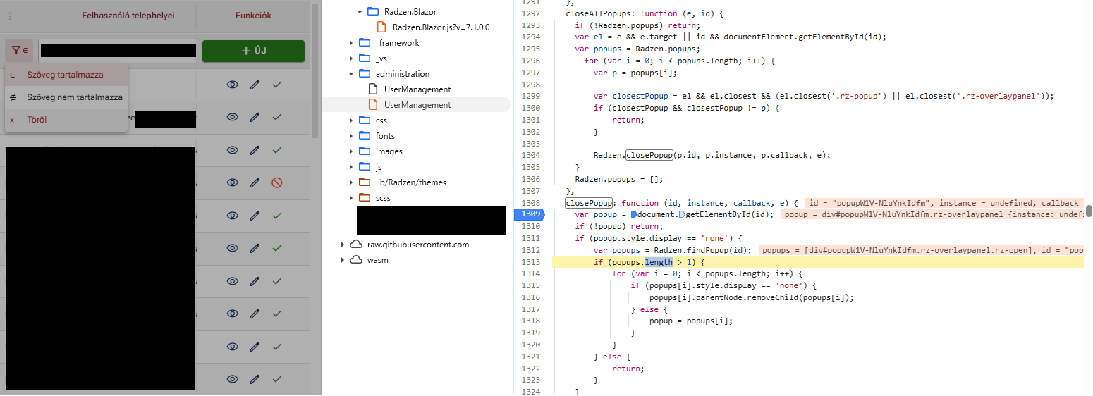 The RadzenDataGridFilterMenu (filter type selector) uses thw following code to generate popupId. filterId = $"{Grid.PopupID}{Column.GetFilterProperty()}fm";