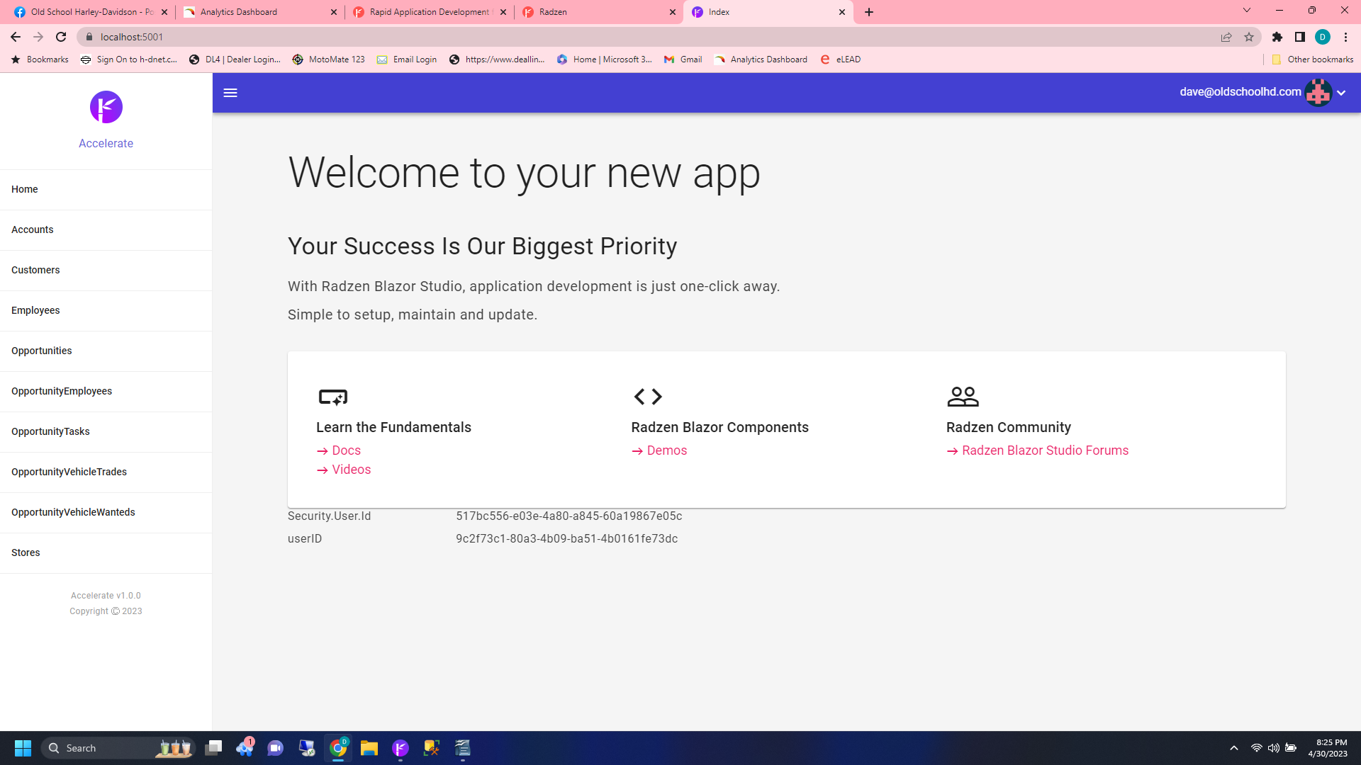 The user.Id was successfully added to both employee records.