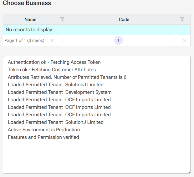 The 6 statements in the text box beginning "Loaded Permitted Tenant" show the name of each entry (I know some aer duplicates, that's fine and expected. The "Code" column of the grid would differentiate these, but no data is showing there either).