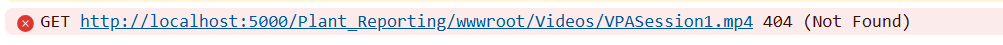 When I execute “/Plant_Reporting/wwwroot/Videos/VPASession1.mp4” from the application I get the 404 error. The application and file are on the server that I have mapped to my client as K: