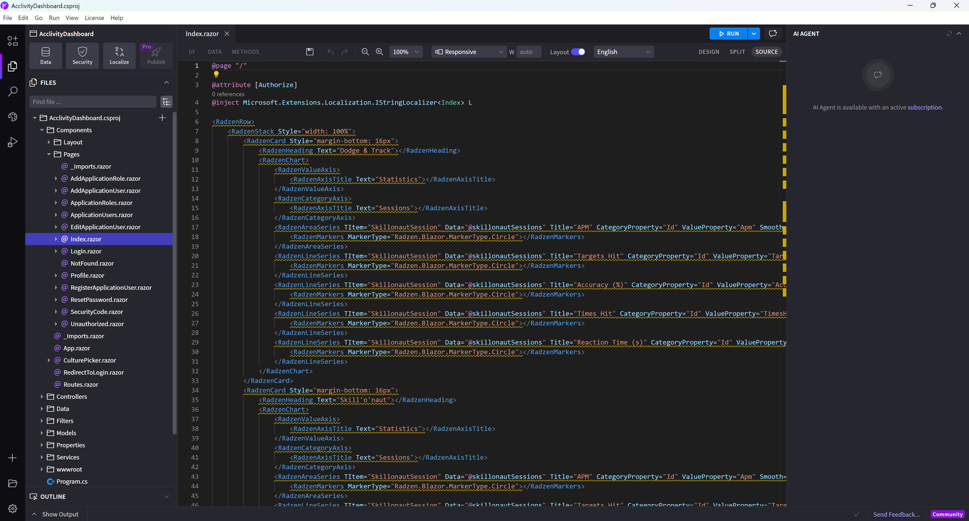 “Found markup element with unexpected name 'RadzenRow'. If this is intended to be a component, add a @using directive for its namespace. Razor(RZ10012)”