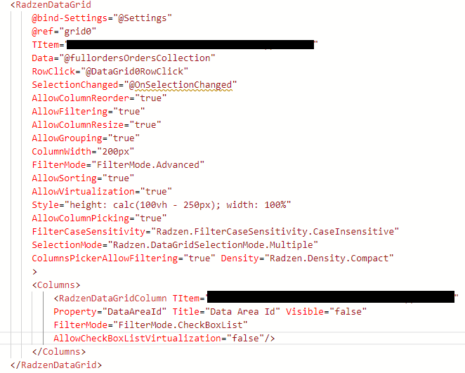 This issue occurs regardless of the type, and with any field previously included in the datagrid. Reverting back to 5.9.9 fixes the issue. Do you have an example where bind-setting works post Radzen 6.x update? What is the proposed solution if it’s nothing something related to this update?