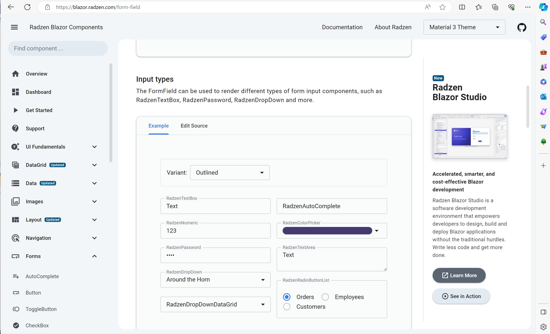<RadzenFormField Text="Sequence number" Variant="@variant">