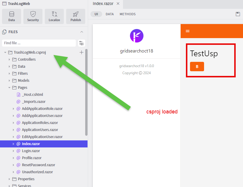 It seems something in that particular project is prevent the preprocessor from working correctly but I don't know what that could be. You can send us this app to info@radzen.com and we will investigate further.