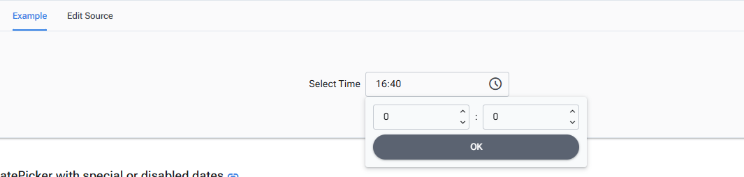 <RadzenDatePicker TValue="TimeOnly?" @bind-Value=@value ShowTime="true" TimeOnly="true" DateFormat="HH:mm" Name="DatePickerTimeOnly" />