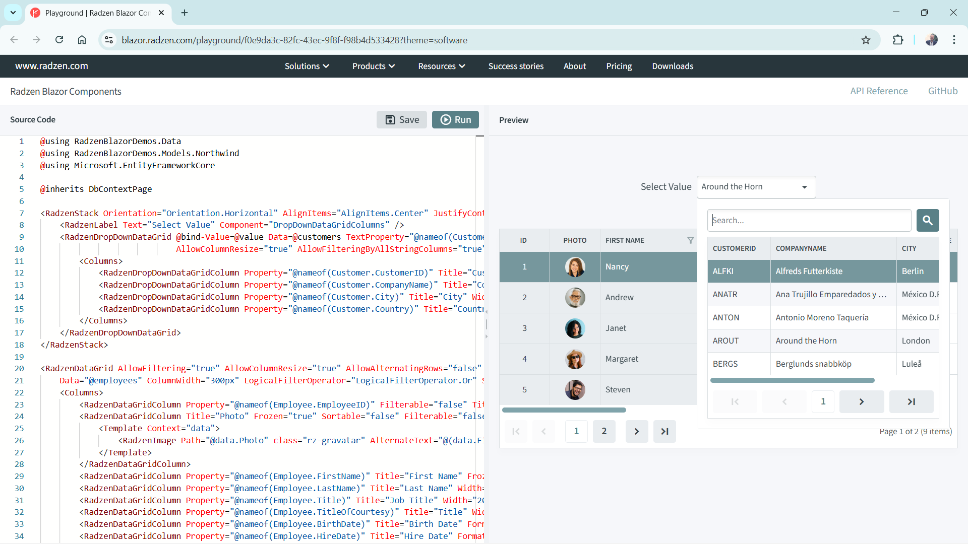 Example with RadzenDataGrid for comparison: