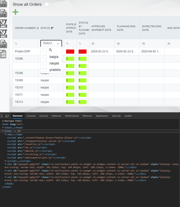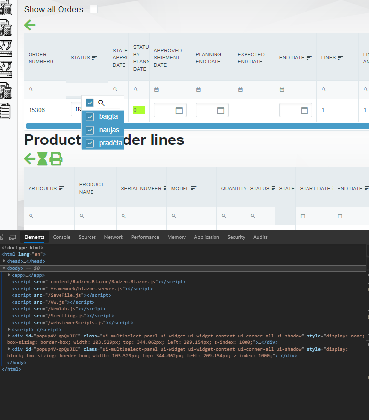 Hi, if i select few options in dropdown and then fast select row of grid and then diffrent row . Dropdown apears one more dropdown with display:block; and stucks on screen.