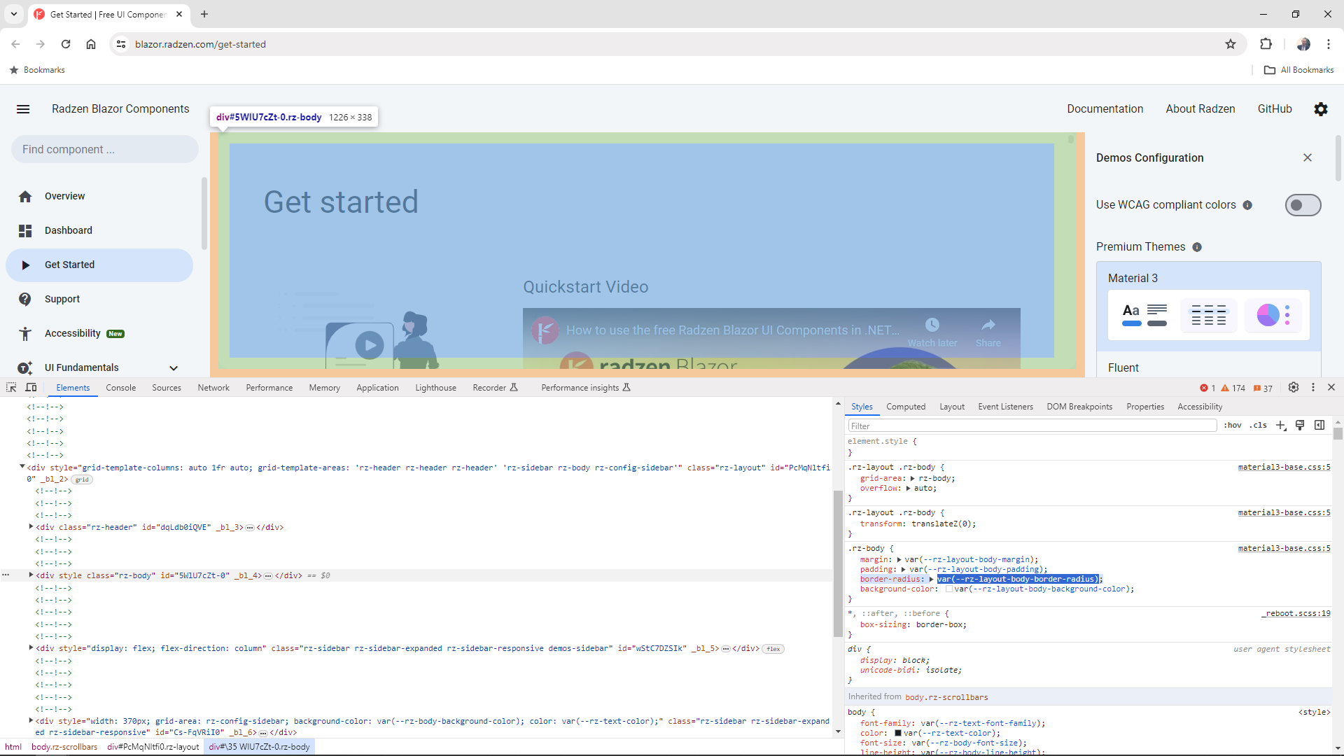 I noticed on your getting started web page Get Started | Free UI Components by Radzen you have rounded edges around the body of your content. It actually is a nice affect that I would like to reproduce on my website. If you don't mind, what are you doing to make those rounded edges?
